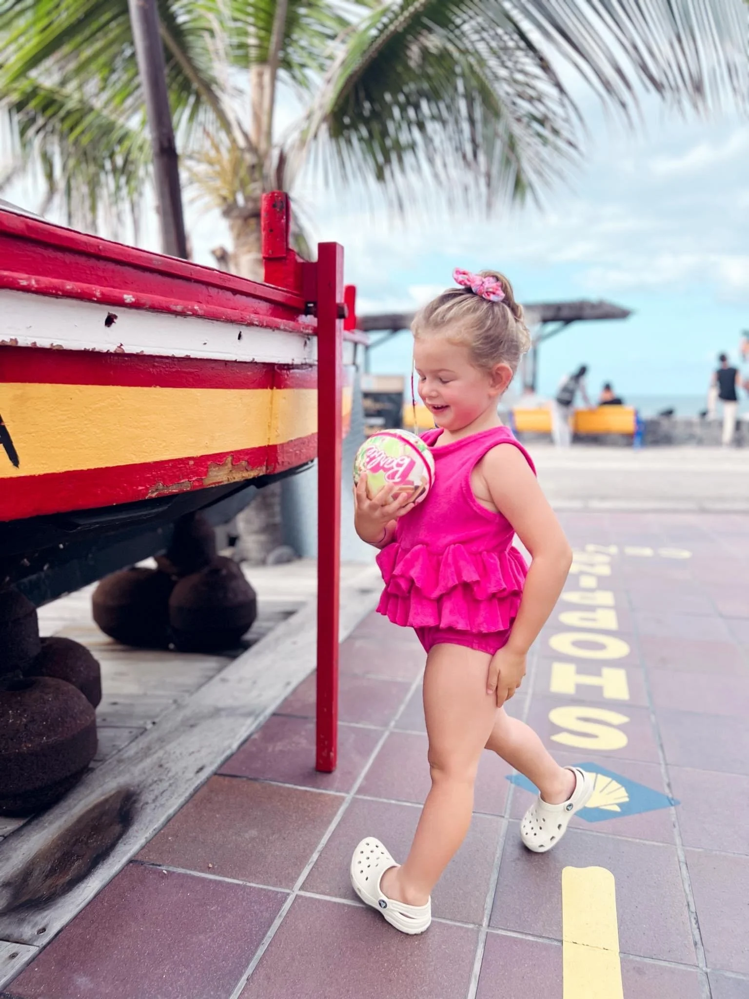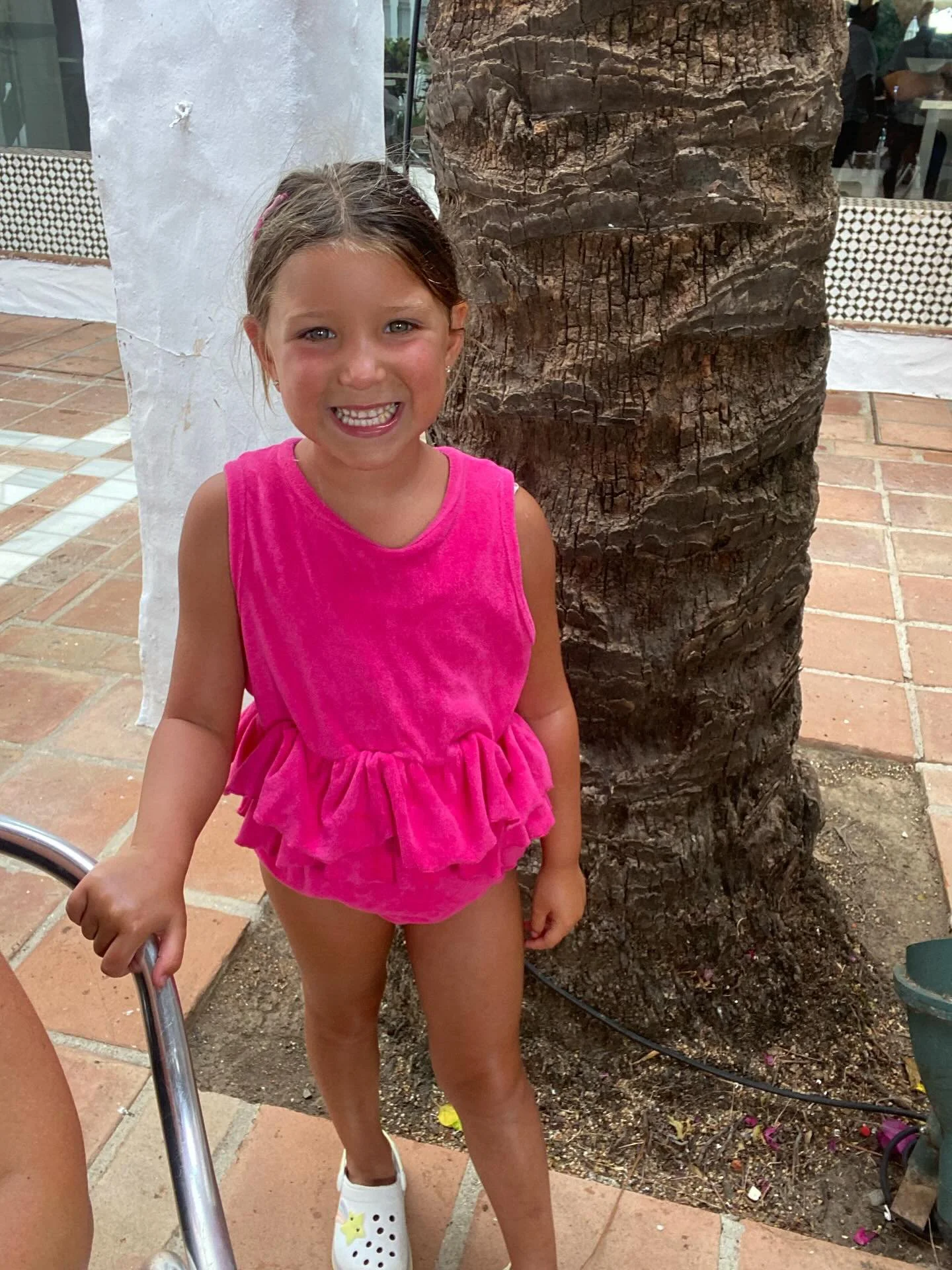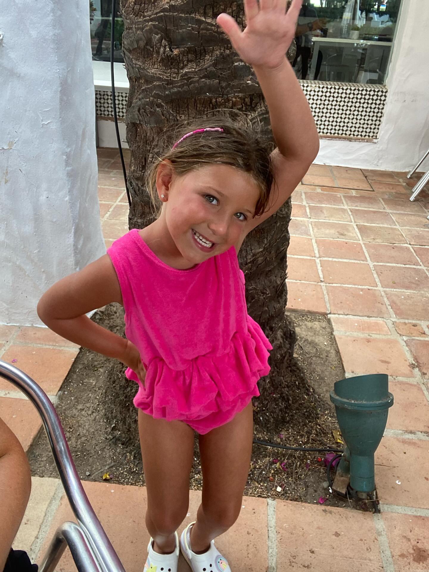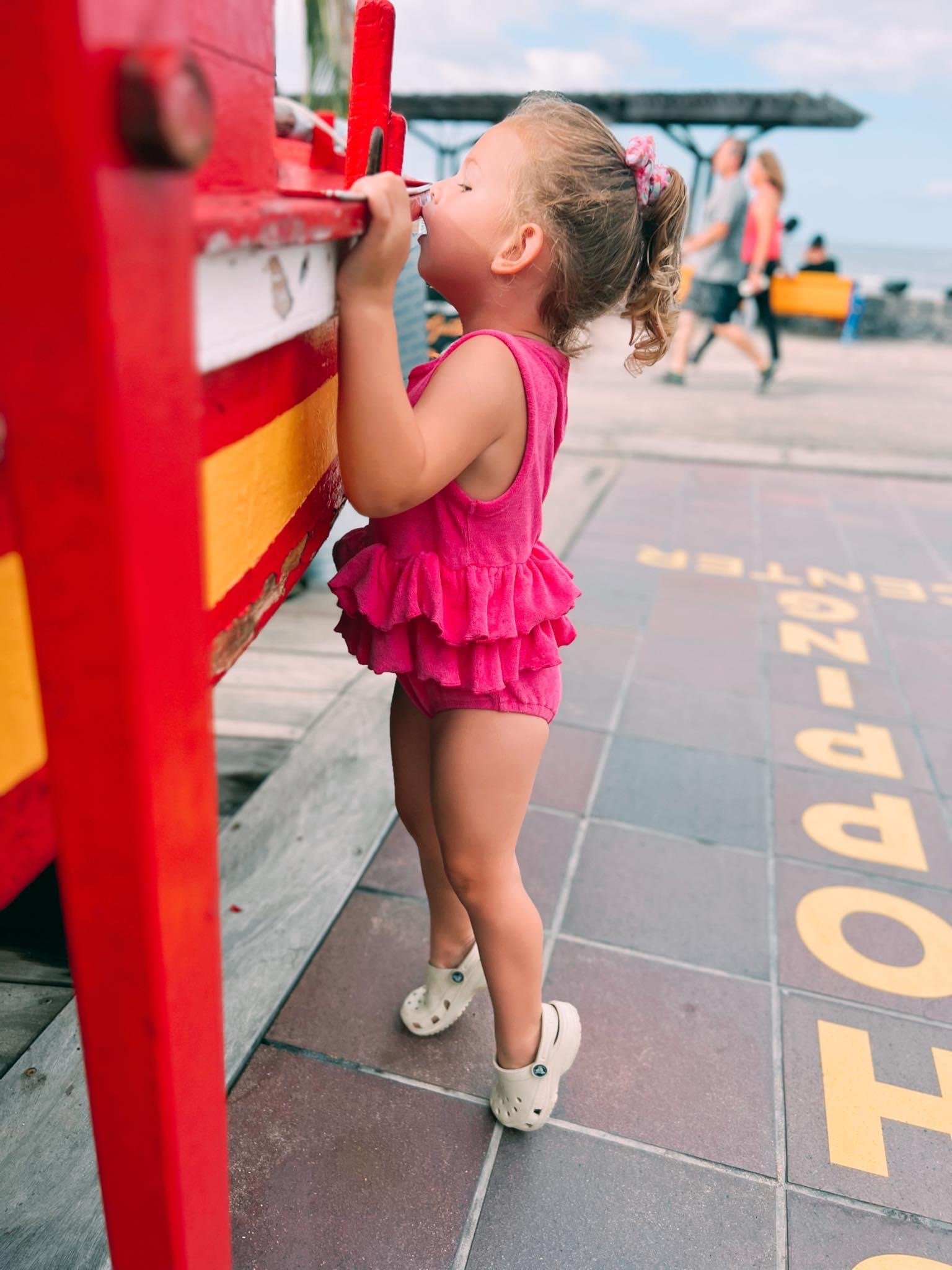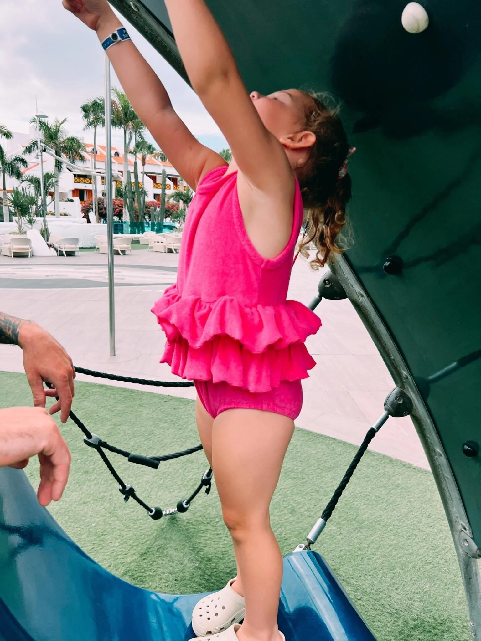 Our Beautiful hot pink towelling romper.. made from soft towelling material with an elasticated frill waist. Perfect for hanging out around the pool or on the beach, we just love this look!